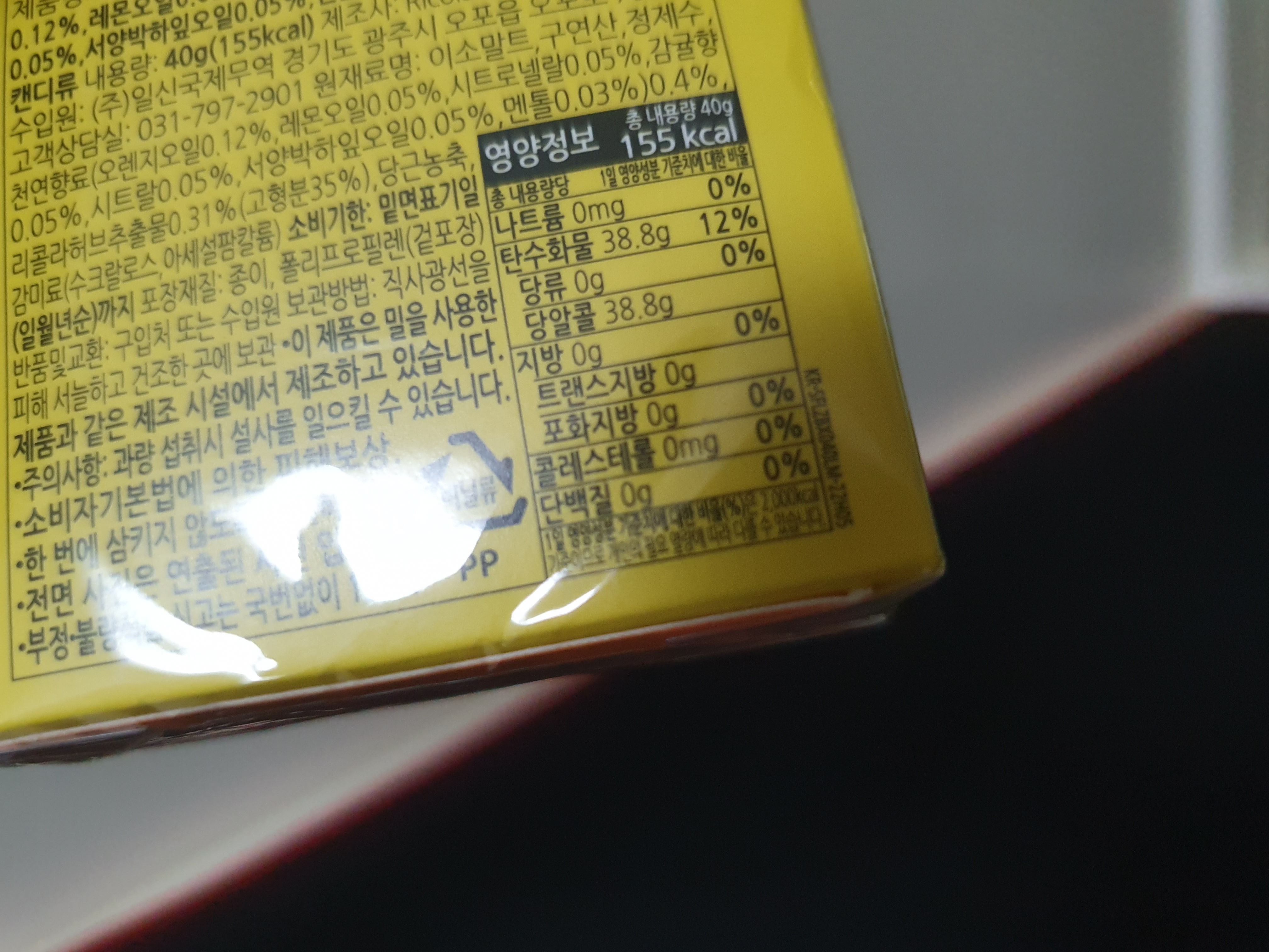 40g 가격이 2400원 정도이다. 만만치는 않은 가격이지만 지금 구매한지 2~3주 넘어가는데 아직도 남아있다. 사탕이 작지만 하나씩 가끔 먹기 때문에 오래 먹게 된다. 칼로리는 155칼로리이다.