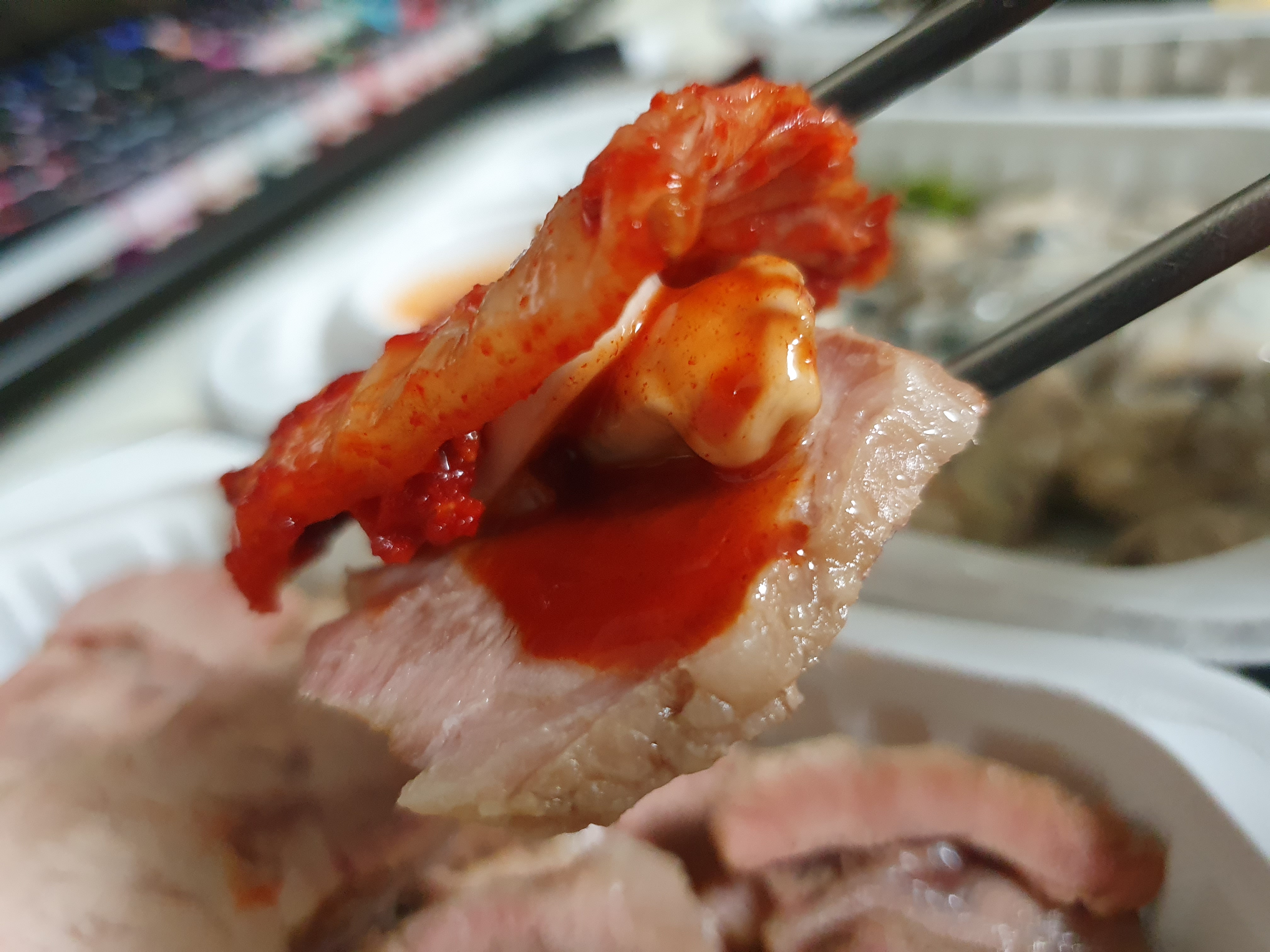 아무튼 다 맛있긴 한데 더 맛있었던 적이 있었어서 얘기를 해본다. 야들야들하고 잘 삶아진 고기이다. 부위는 삼겹살이다.