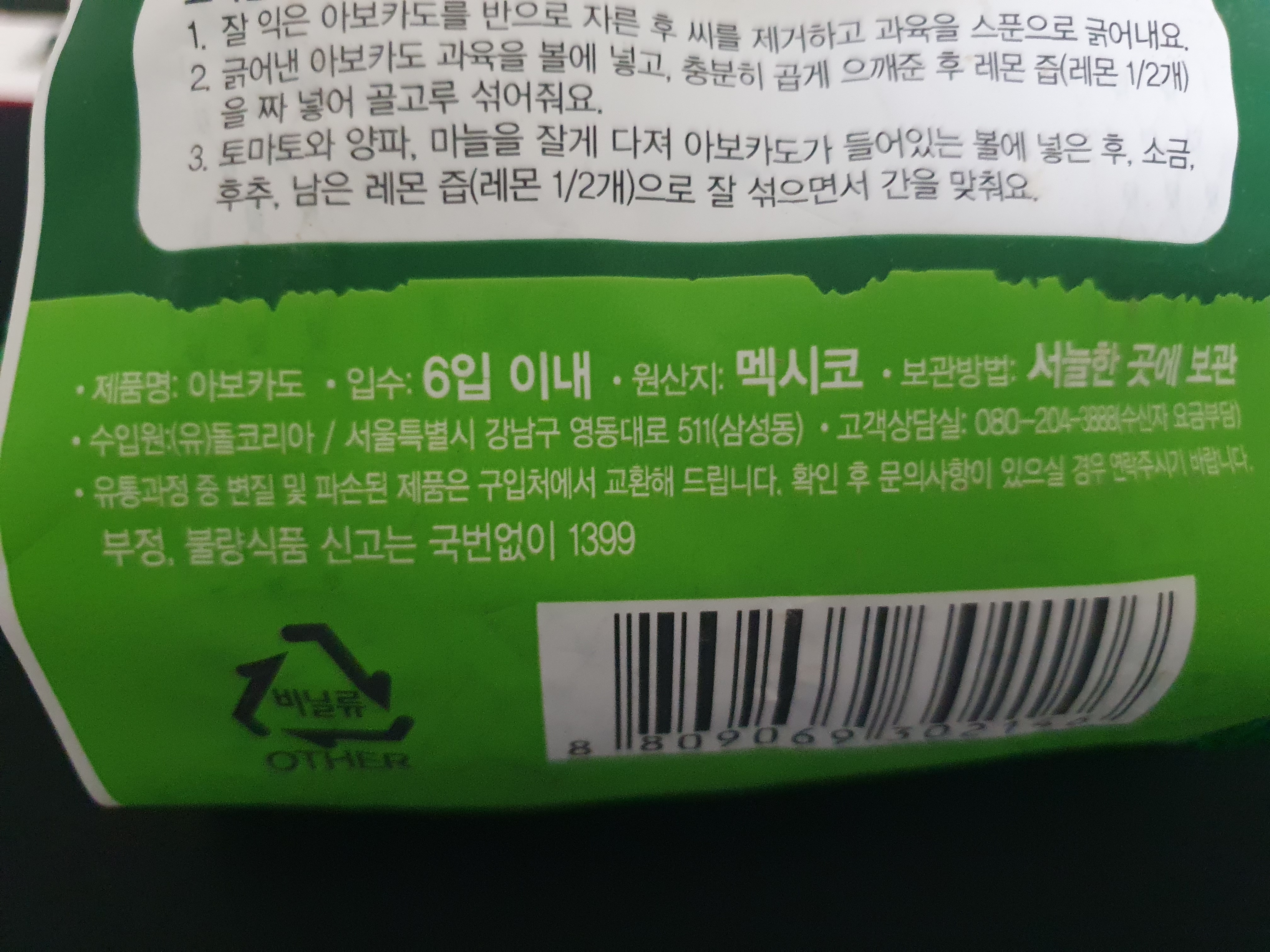 6개입 이내로 들어있는 제품이라 600g이내 제품이다. 멕시코산이고 항상 2개 짜리 구입하곤 했고 Dole 제품을 자주 사먹었는데 크흠... 6개입은 처음인데 아아... 아무래도 이게 6개입이 인기가 없는 것 같다.