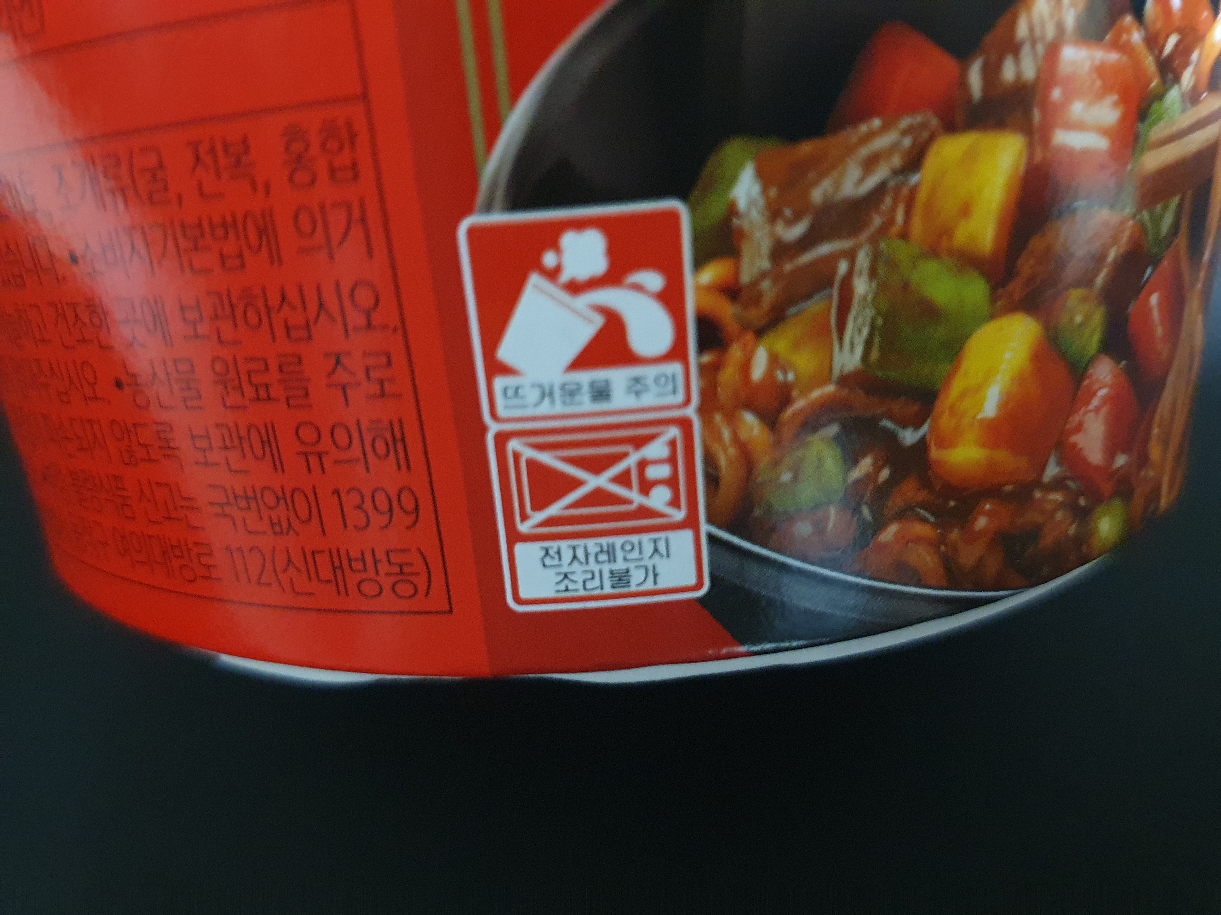 이거는 '전자렌지 조리가 불가능'인데 아놔;; 또!!... 짜파게티 생각하고선 물을 가득 담았다. 분말스프와 함께... 아놔ㅠㅠ