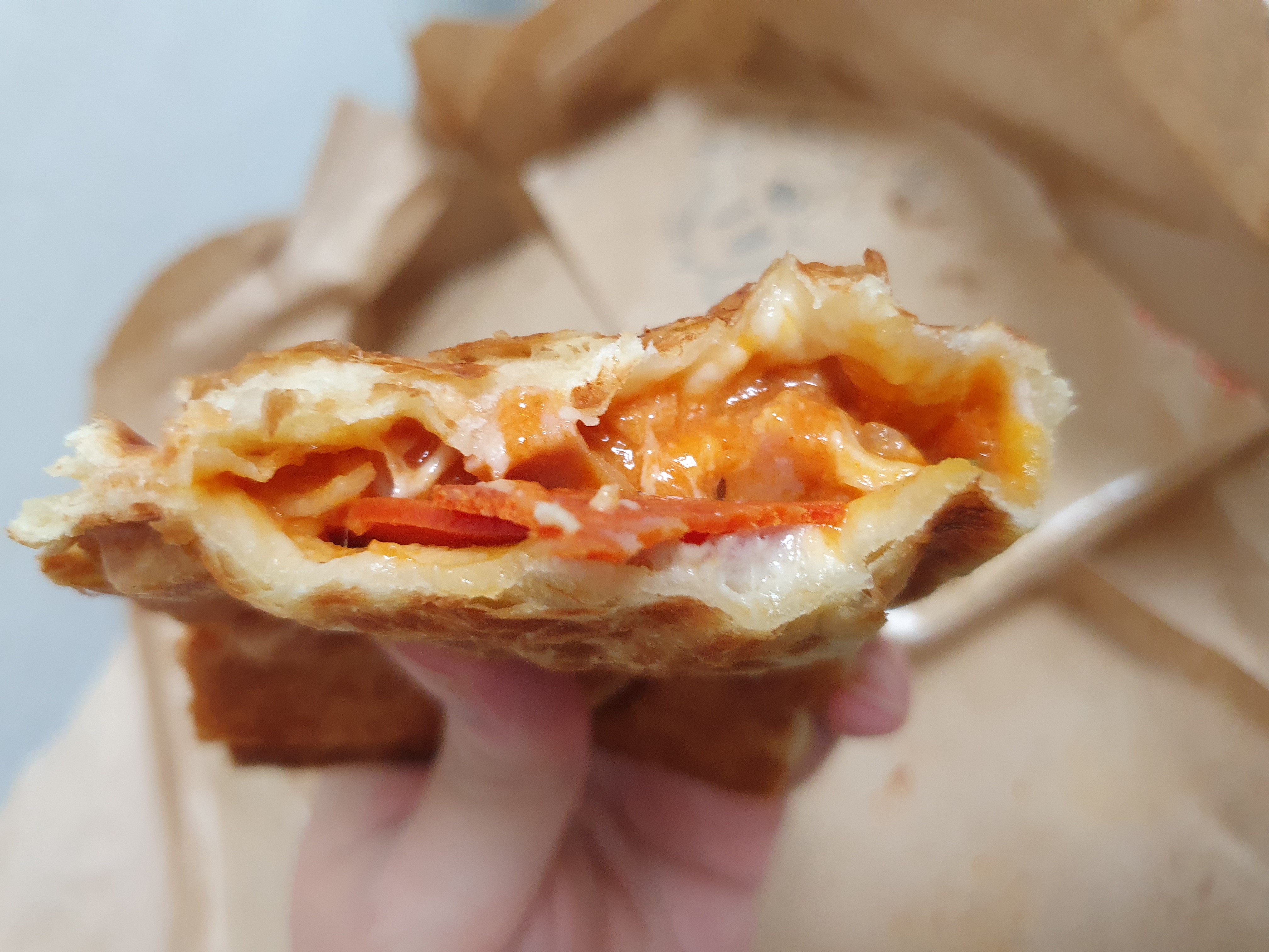 개인적으로 추천하는 건 '피자맛'이다. 다른 것보다 '페퍼로니'하고 페스츄리가 진짜 완전! 잘 어울린다. 와 대박 조합인데? 이거는 꼭 피자맛이 아니어도 페퍼로니 하고 페스츄리 붕어빵하고 잘 조합하면 대박 맛나겠는데? 너무 맛있었다.