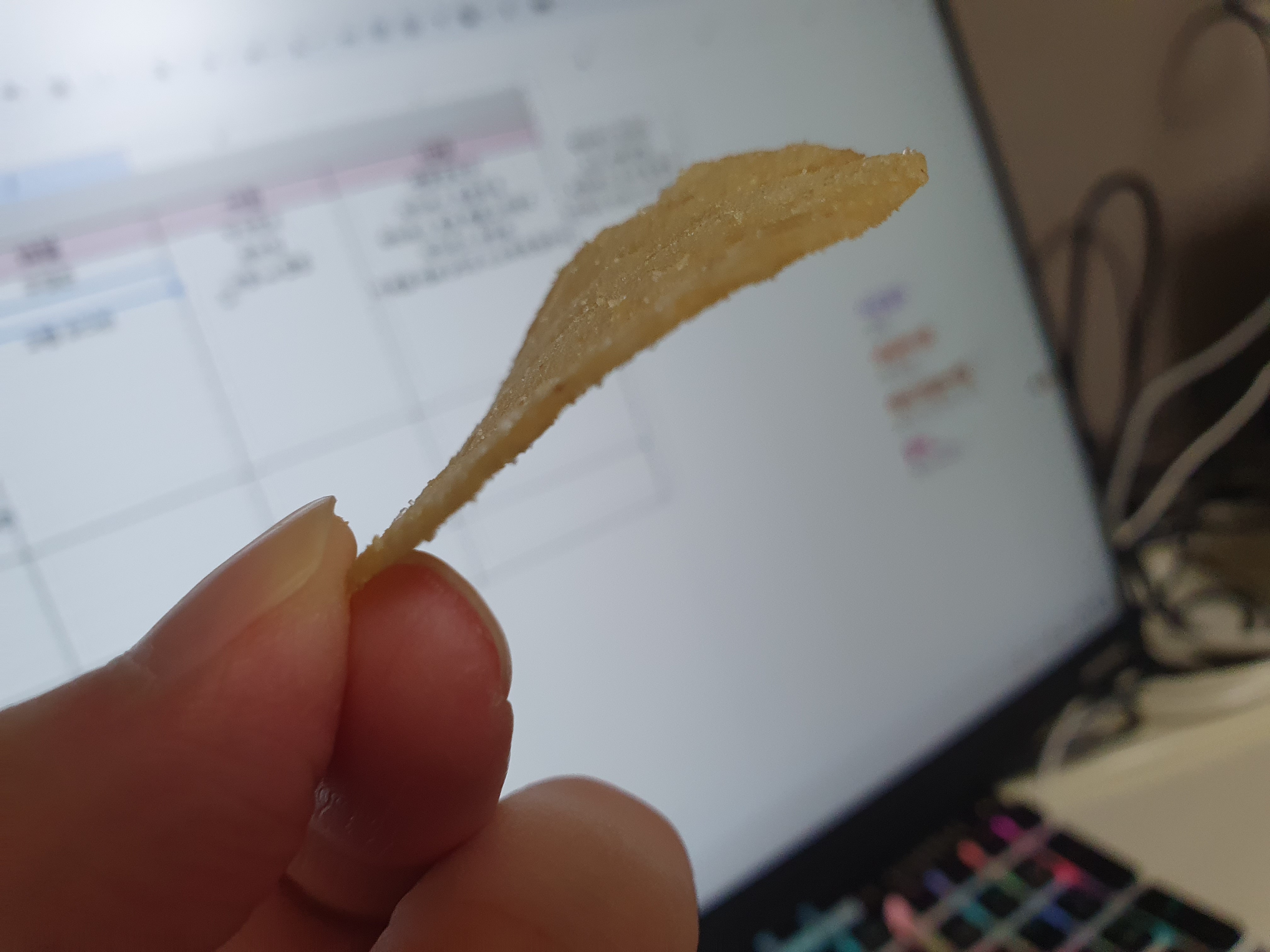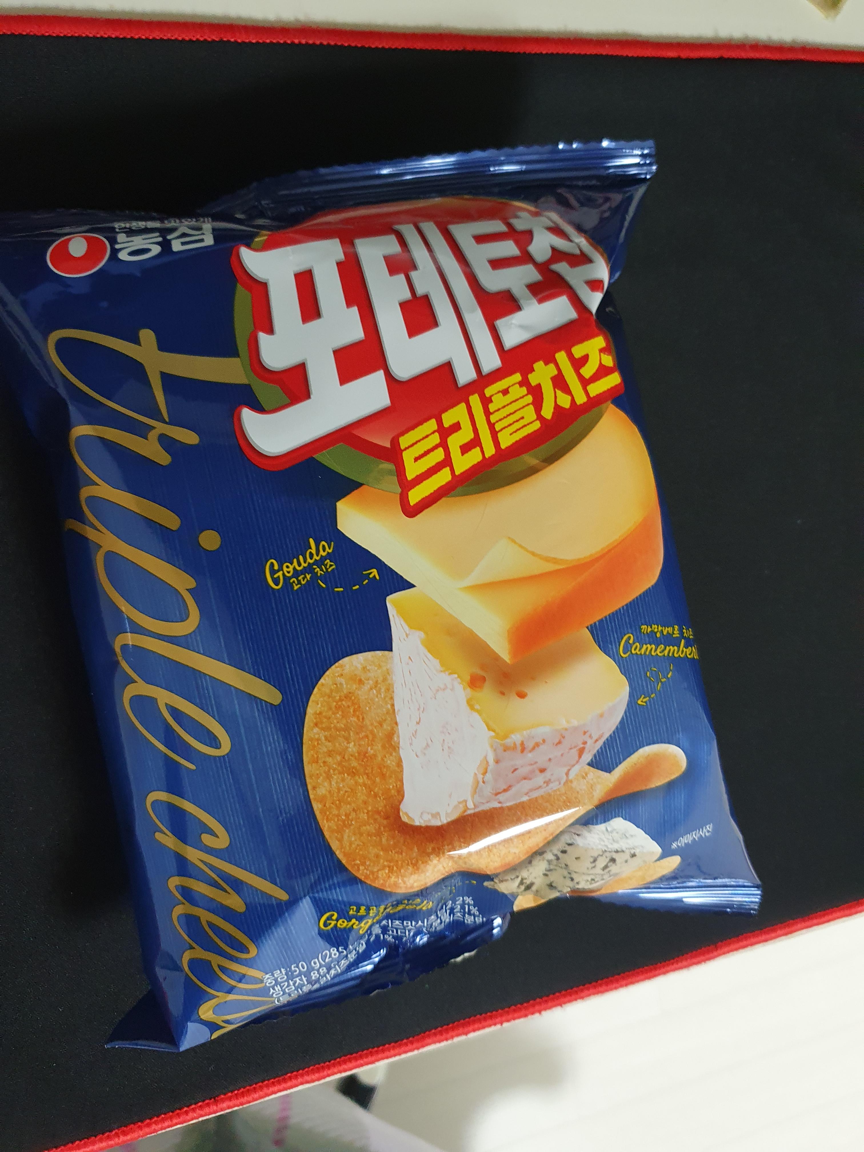 개인적으로 포테토칩 트리플치즈의 맛은, 최애 정도까지는 아니지만 먹어볼만은 하다고 본다. 한번 먹으면 다음날 또 생각나는 맛은 아니지만, 한번 먹을 때 꽤나 강렬한 맛을 맛보게 되고 앞서 말했듯이 손이 계속 가는 맛이라서 한봉지 털기는 매력적인 과자이다.