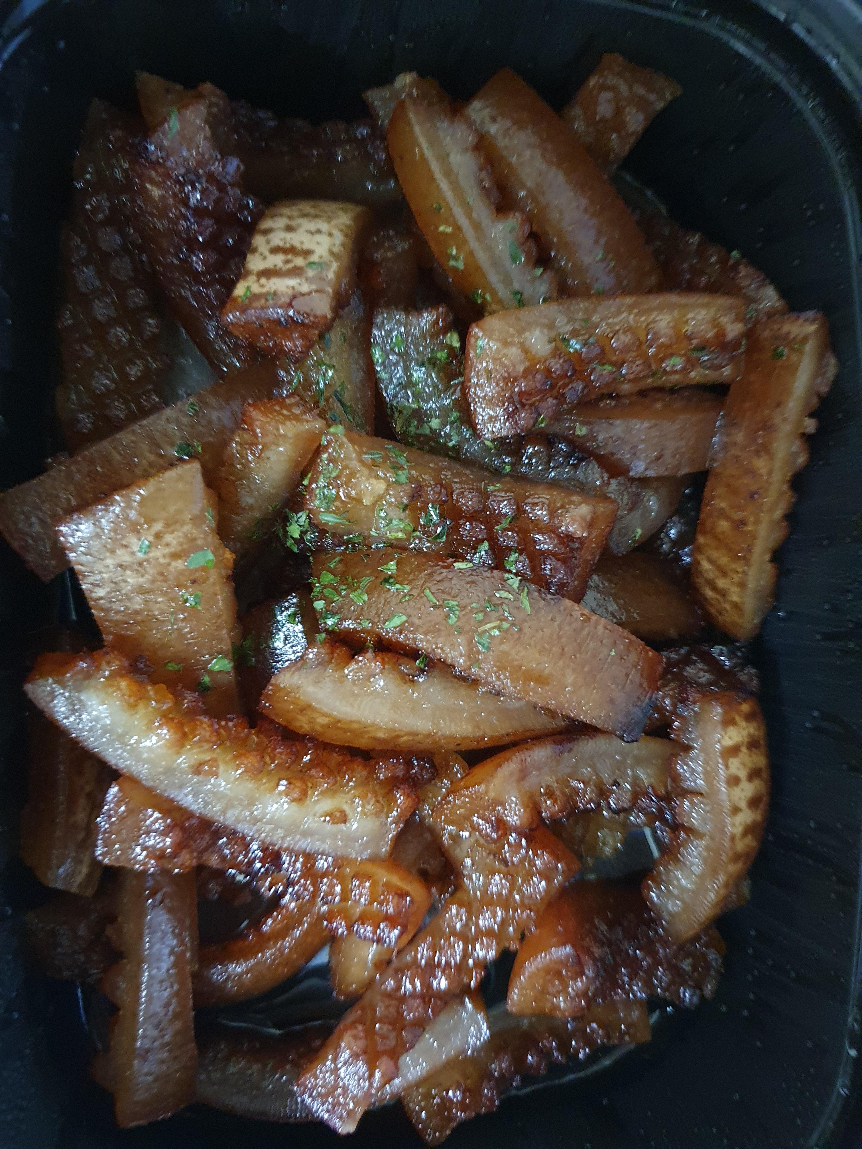 역시 자극적인 건 매운 숯불소스였다.ㅎㅎ 너무 맵지 않았고 너무 짜지도 않은, 밸런스가 잘 잡힌 숯불소스였다. 한번은 콩가루 찍어먹고 한번은 숯불소스 찍어먹고 한번은 둘다 같이 찍어먹고ㅎㅎ 거기에 집에 있는 허브솔트까지 같이 해서 먹으니 여러 맛을 느낄 수 있어서 좋다. 껍데기는 역시 찍어먹을 소스가 다양하면 꿀맛~