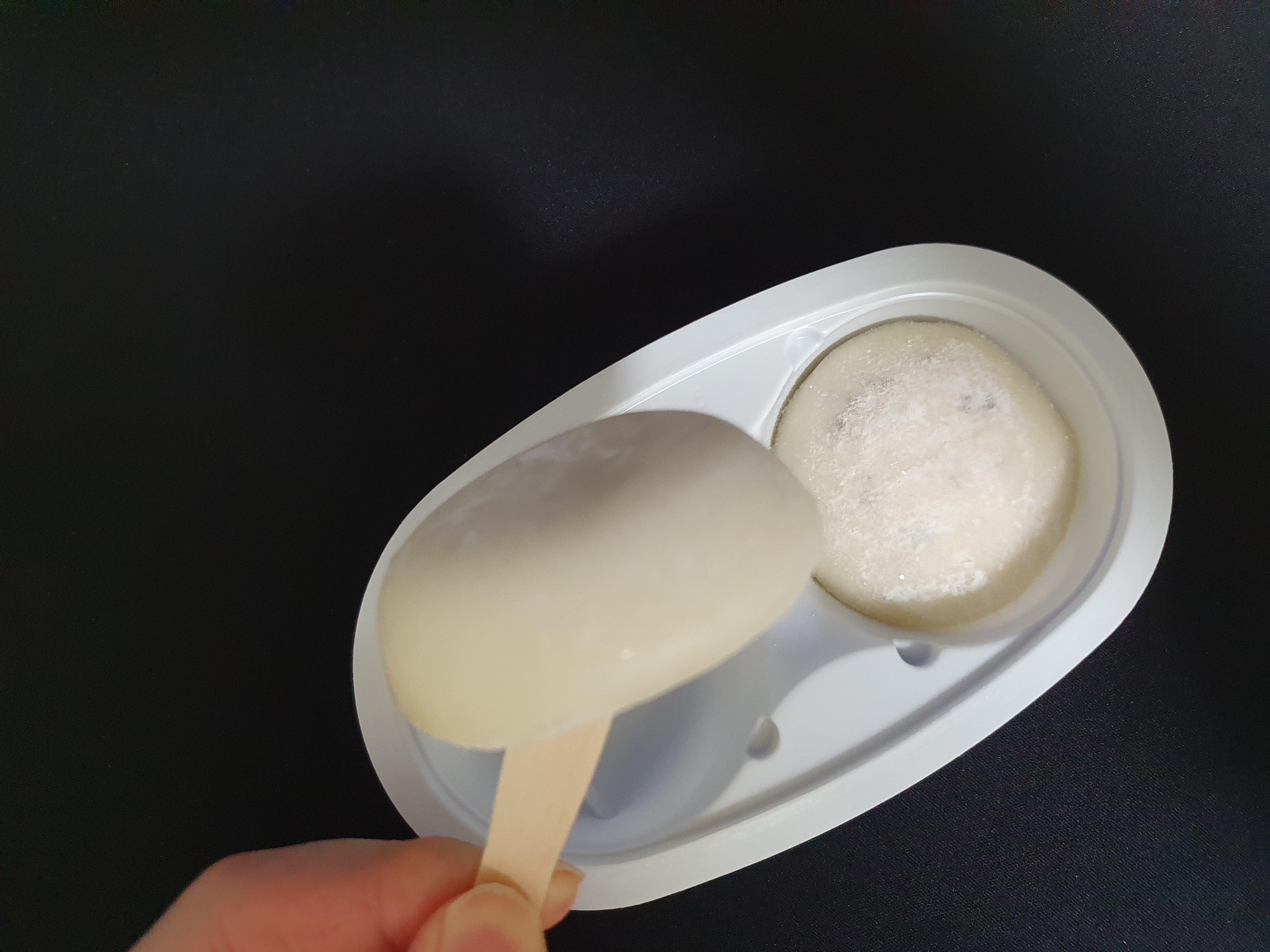 그리고 나무 포크로 바뀌었네... 언제 바꼈지?ㅎㅎ;; 이건 아무래도 규제 때문에 나무로 바뀐 거겠지? 아님 말고. 아무튼 찰떡아이스도 플라스틱 포크로 먹어야 제맛인데 크흠... 이것도 아쉽구만.