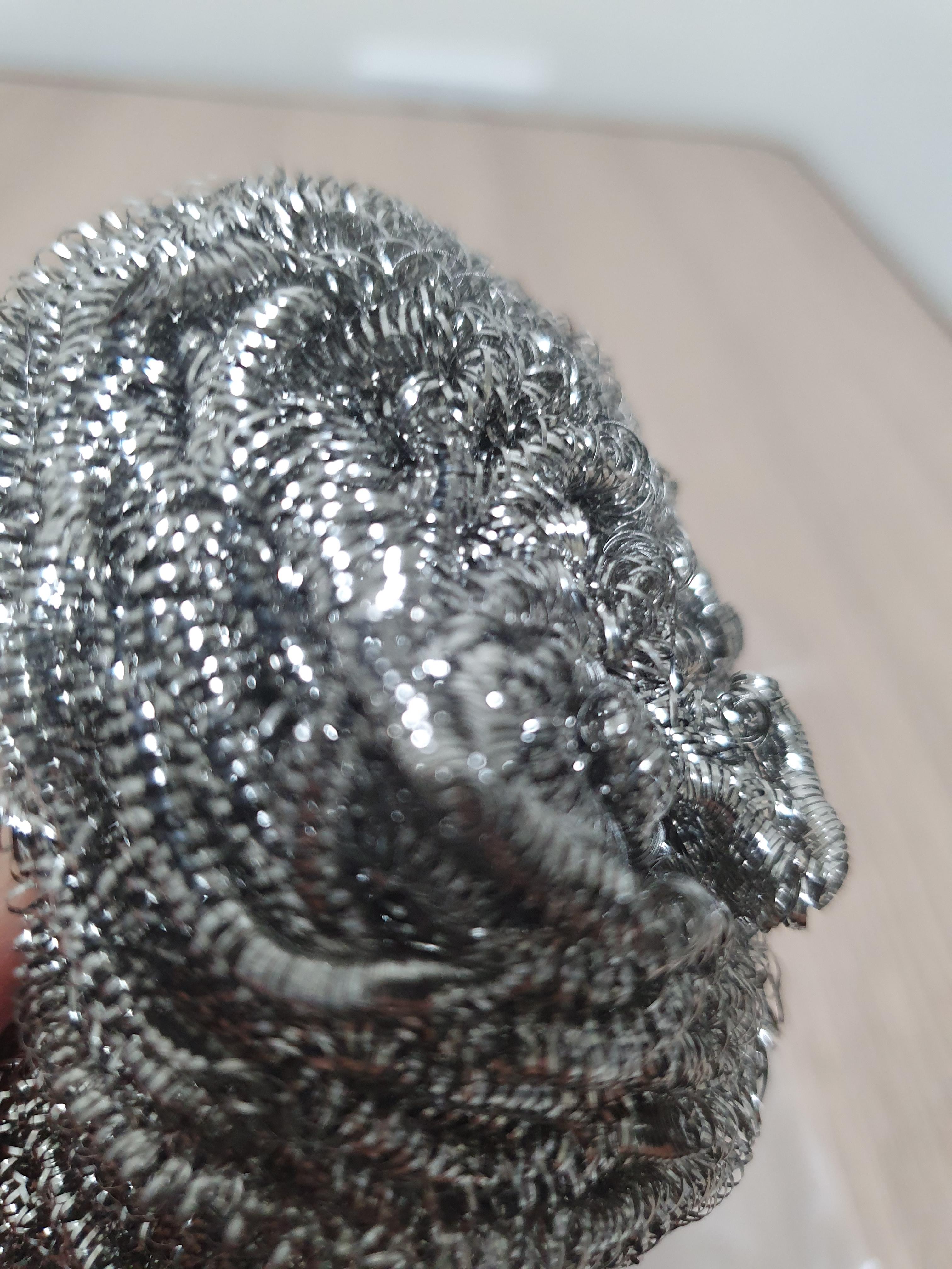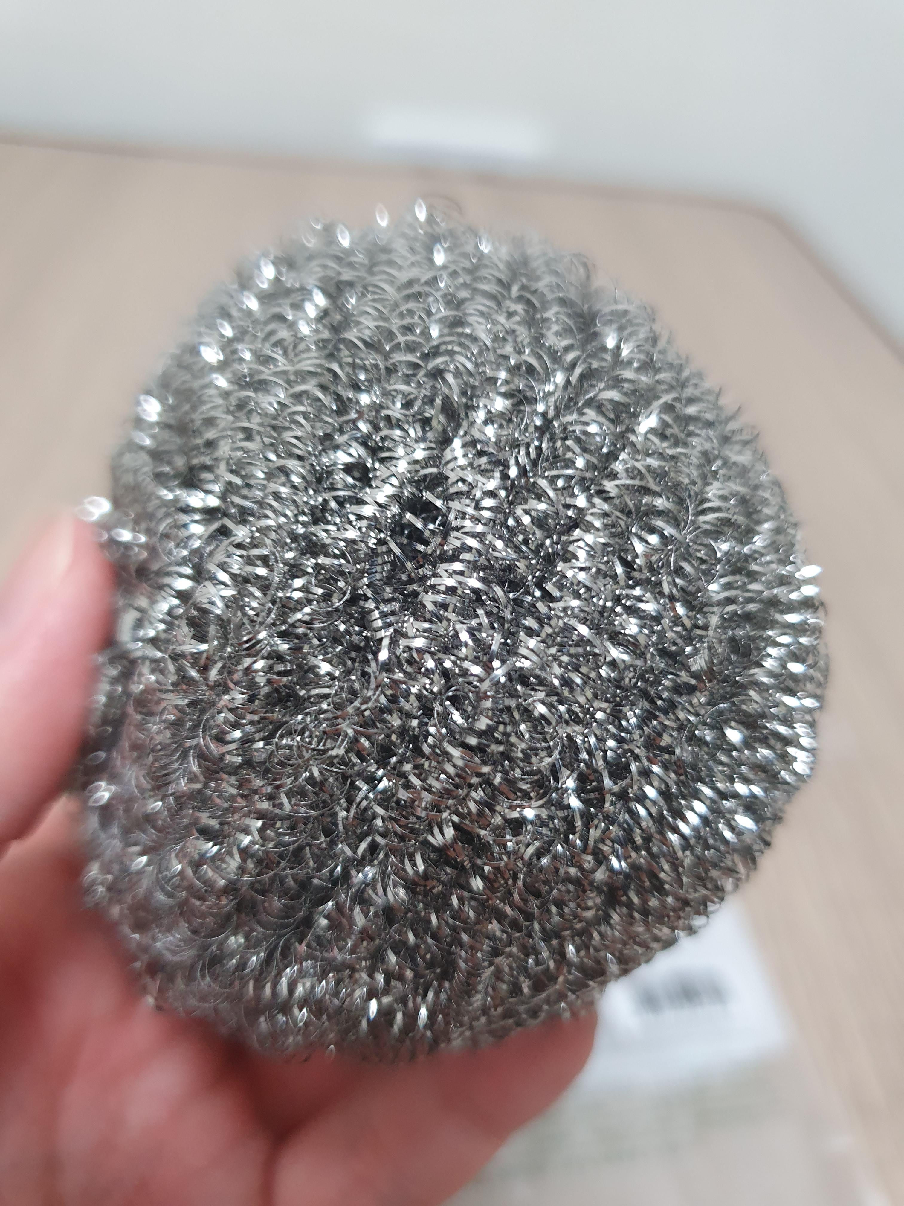 앞서 녹이 잘 슬지 않는다는 건 언급했고 쉽게 끊어지지 않으며 엉키지 않아서 사용이 편리하다고 하는데 딱 맞다. 보면은 잘 끊어지지 않는 것 같다. 일반적으로 흔히 사용하는 철 수세미는 파편이 꼭 생기기 마련인데 이거는 좀 덜할 것 같단 느낌이 든다.