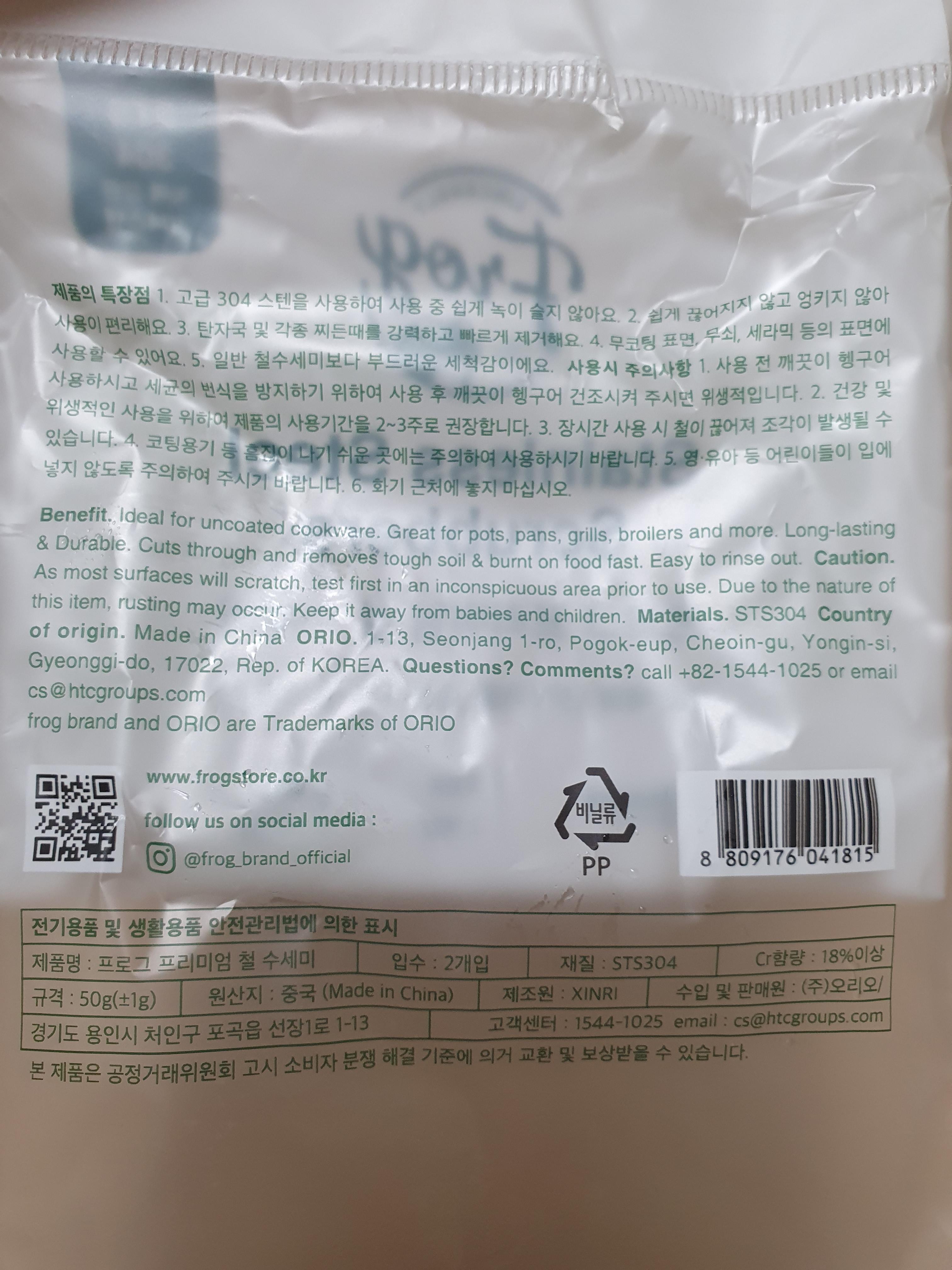아주 쫀쫀하고 잘 감겨있는 철수세미였다. FROG(프로그) 제품이고 생각보다 품질이 좋아가지고 앞으로 철수세미 필요하면 프로그 제품 구매하면 되겠다는 생각이 들었다.