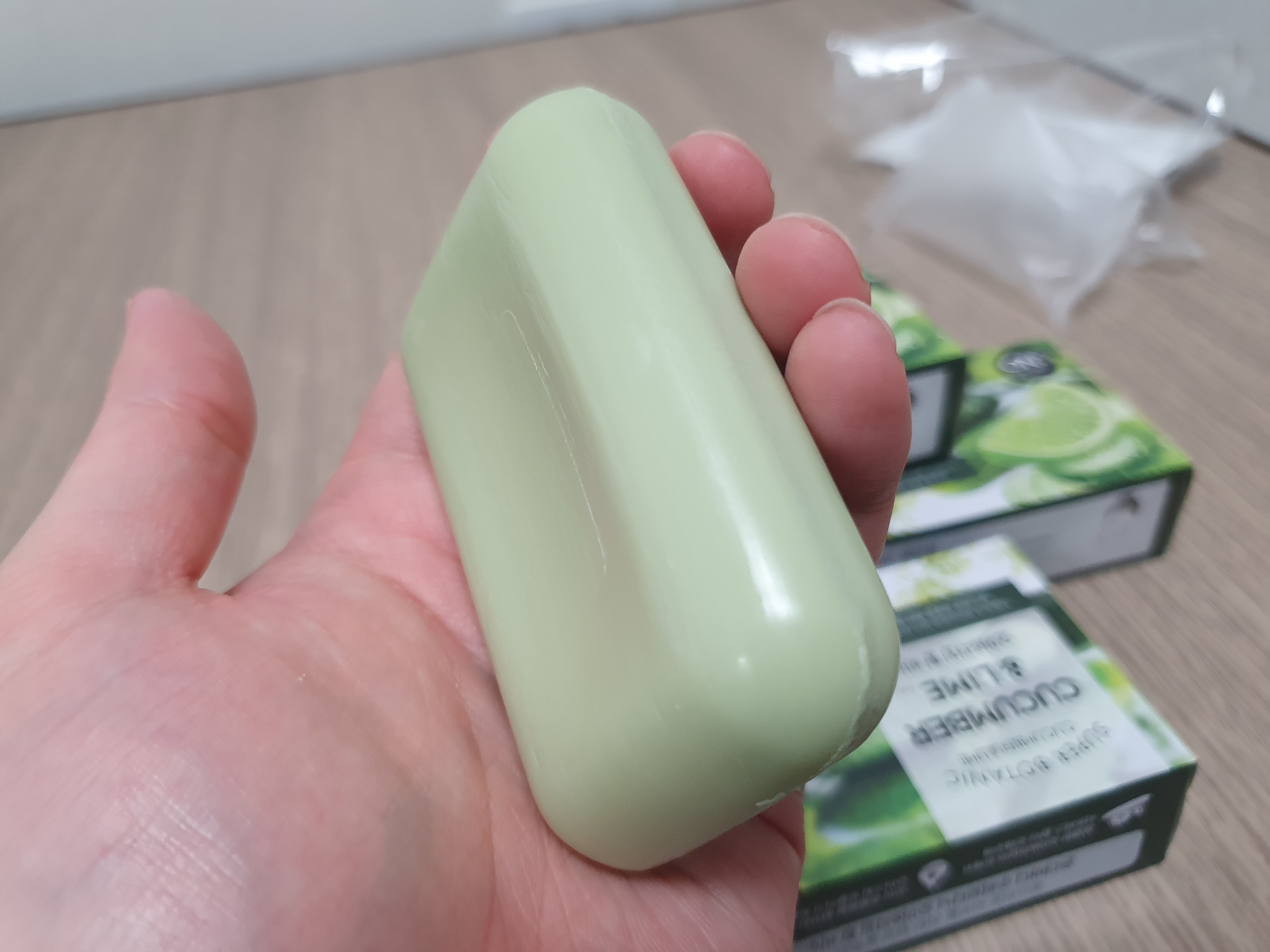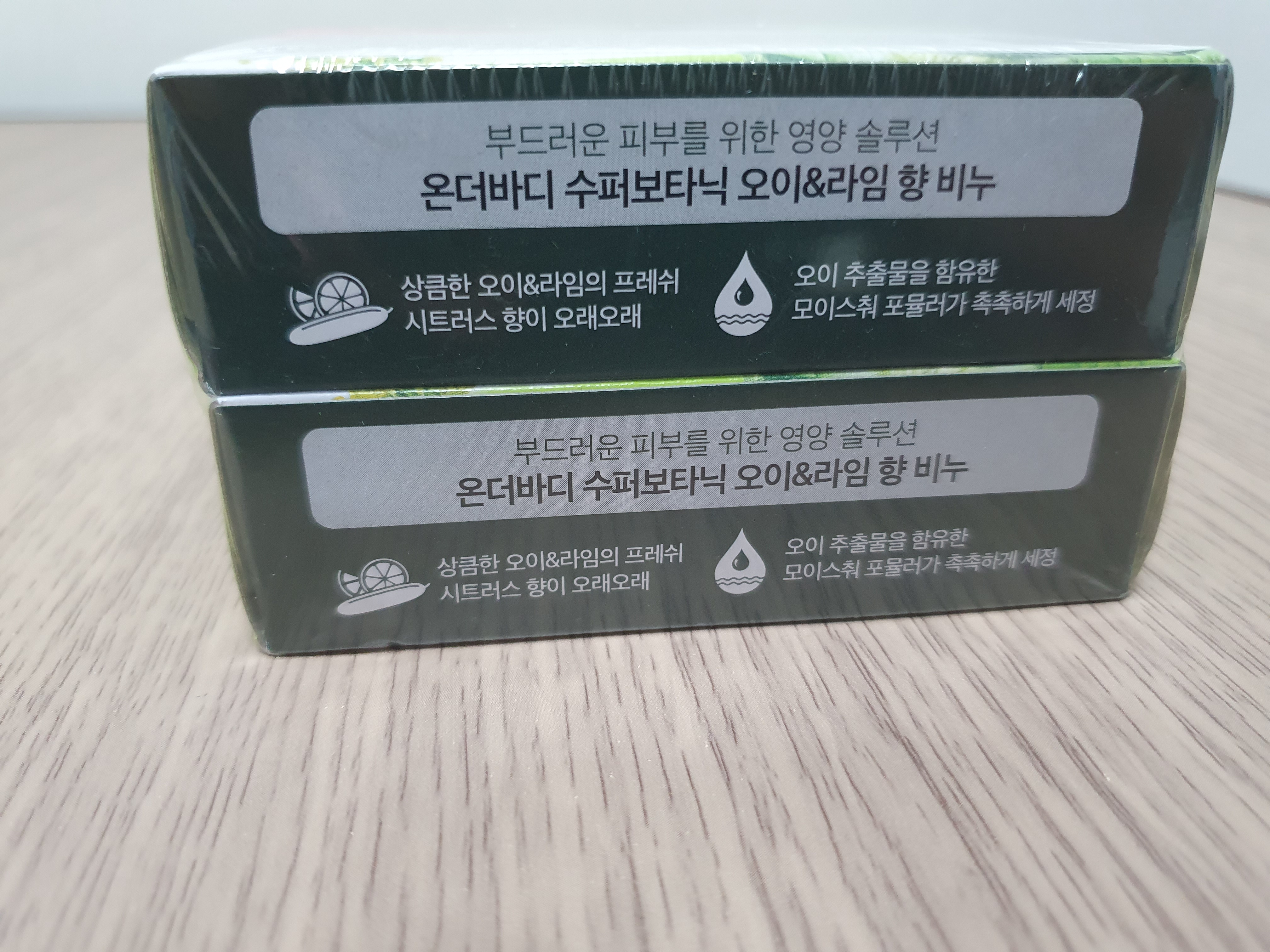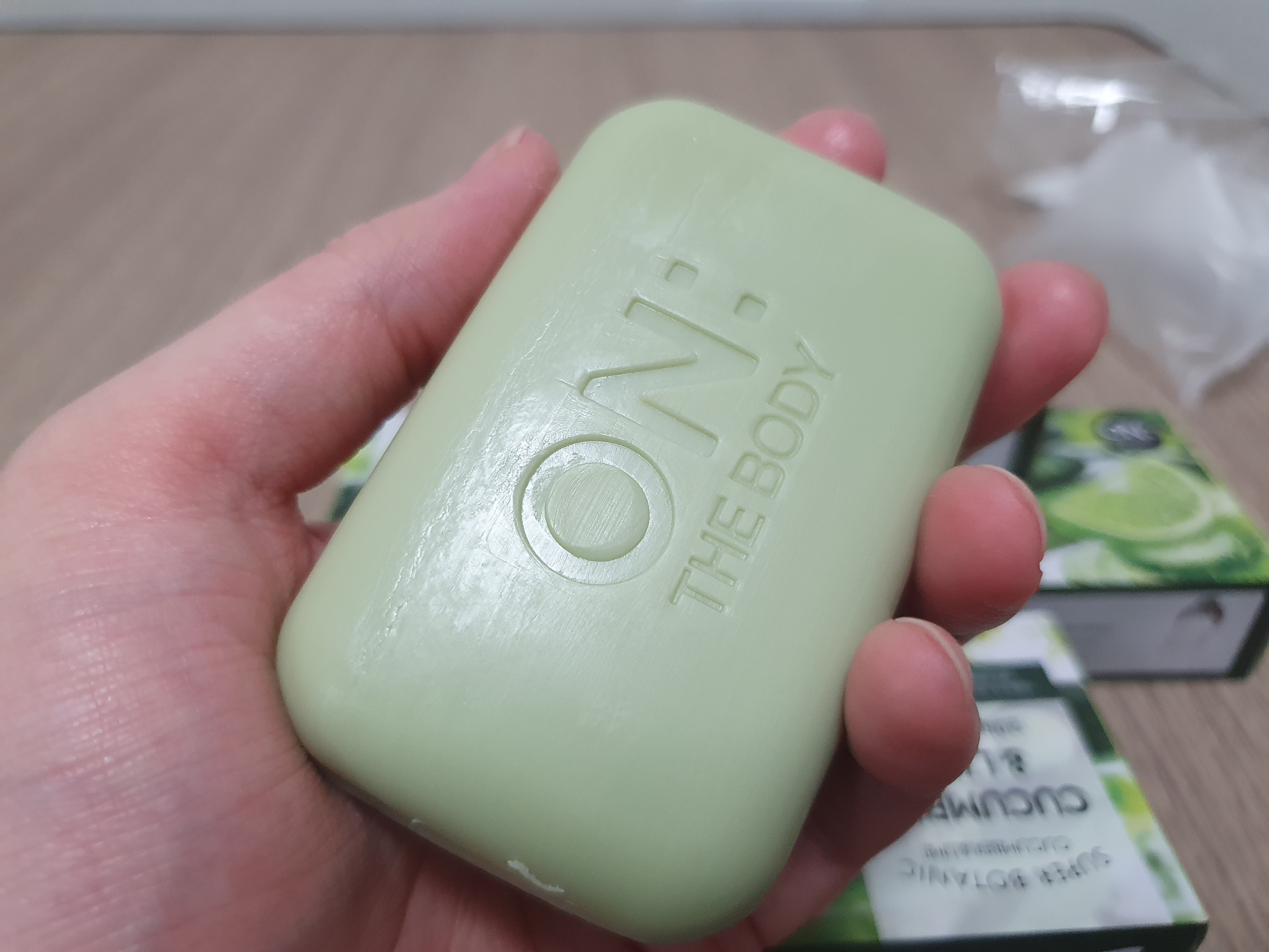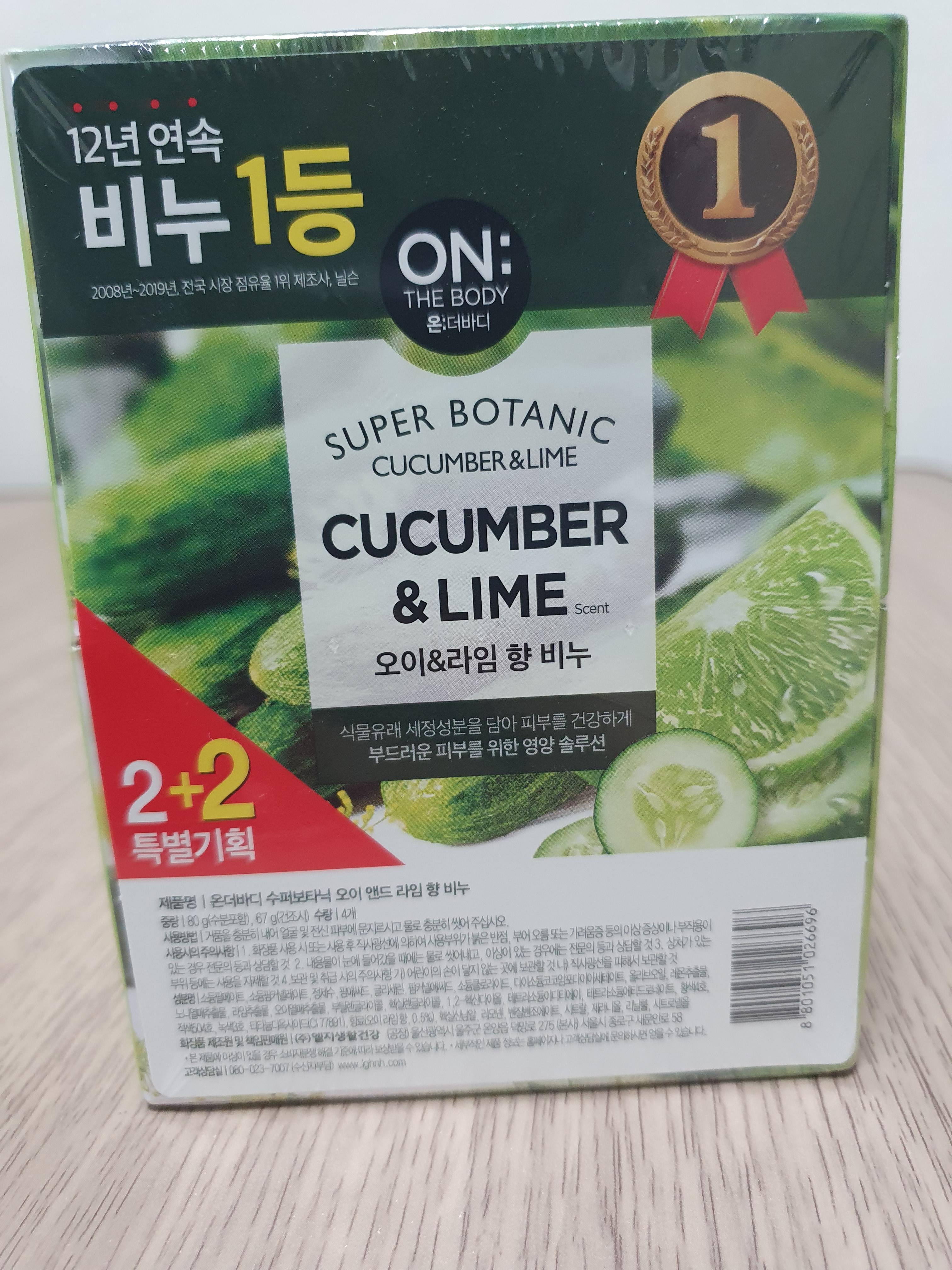온더바디 제품이고 슈퍼보타닉 오이라임 비누이다. 4개입으로 구매를 했는데 구매 당시 50% 할인이라서 비누가 다 떨어졌기도 하고 바로 쟁여놨다.