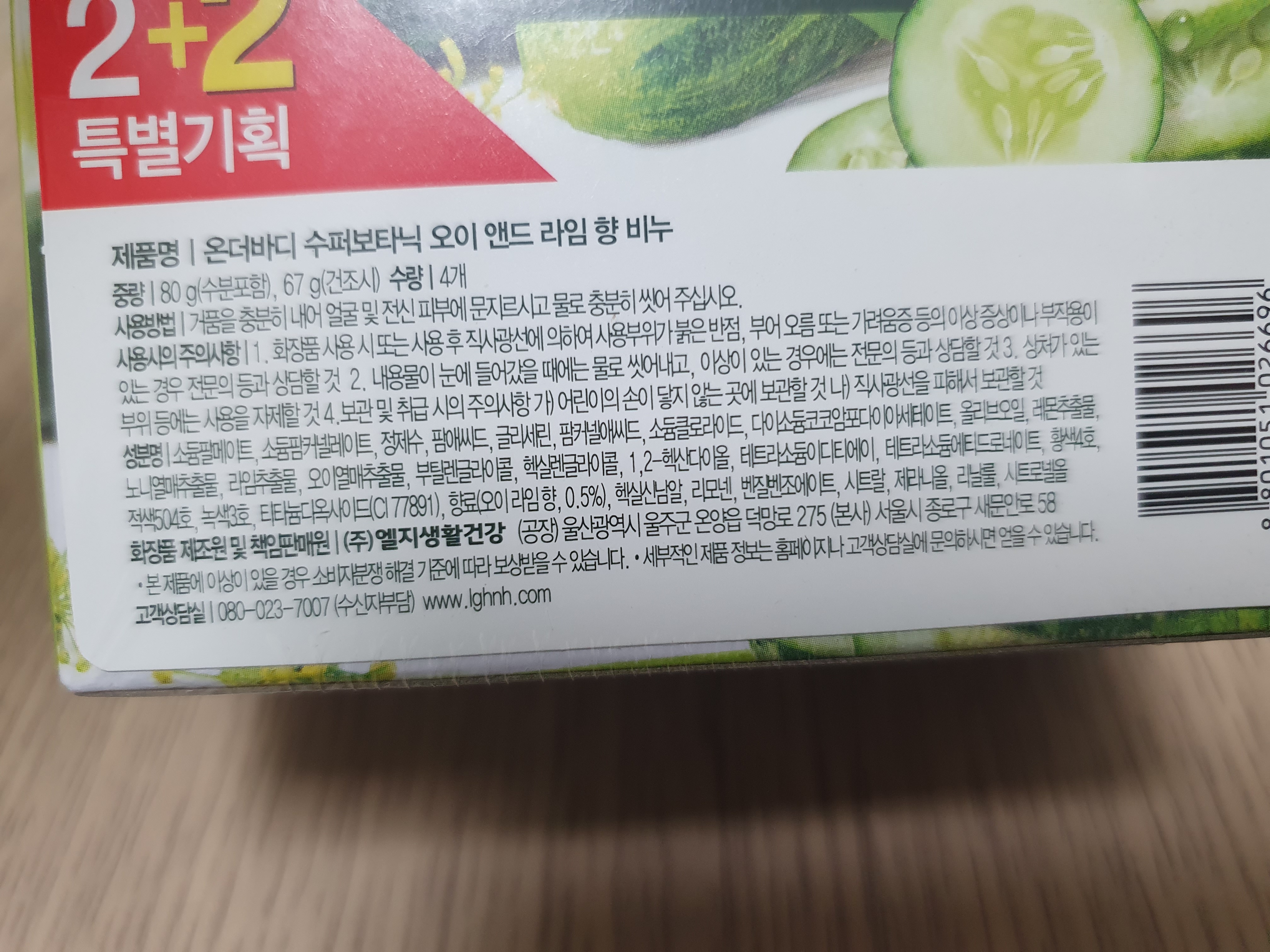 80g 4개입의 가격은 10000원 정도이다. 나는 50% 할인할 때 구매해서 5000원에 구입했다. 오이&라임 향이고 앞서 말했다시피 향은 그리 강하진 않고 그냥 향긋한 그런 향이다.