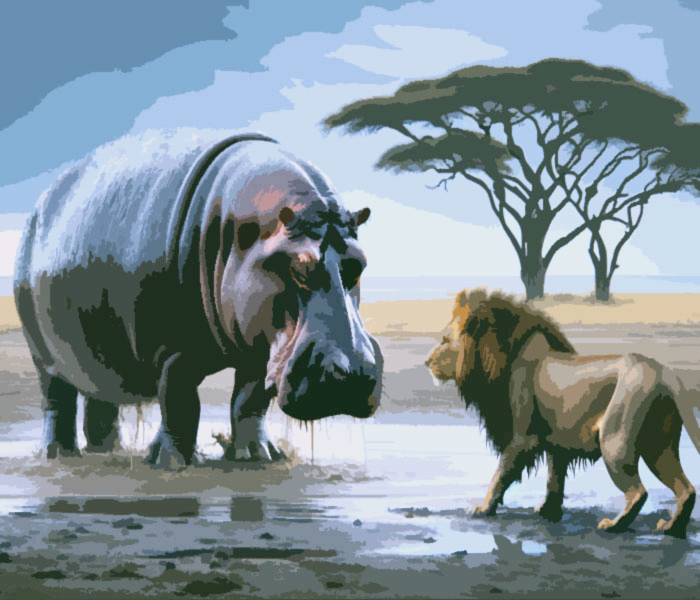 하마는 무는 힘으로 사자도 이길 수 있다고 알려진 무서운 동물이다. 보통 하마의 이미지는 귀엽게 그려지는 경우가 많지만, 동물원이 아닌 야생에서 하마를 마주친다면 죽음을 각오해야 할 정도로 흉폭한 동물이다. 하마 자체가 흉폭한 성격이라기보다는 생존 때문에 어쩔 수 없이 영역에 대한 경각심이 매우 높기 때문이다. 하마는 자주 이동하기보다 서식지에서 오래 눌러앉는 습성을 가지고 있다. 해서 자신의 영역 안으로 들어오면 흉폭한 모습을 보여준다. 하마한테 물리면 악어마저도 두동강이 날 정도로 매우 강한 무는 힘을 가지고 있다.