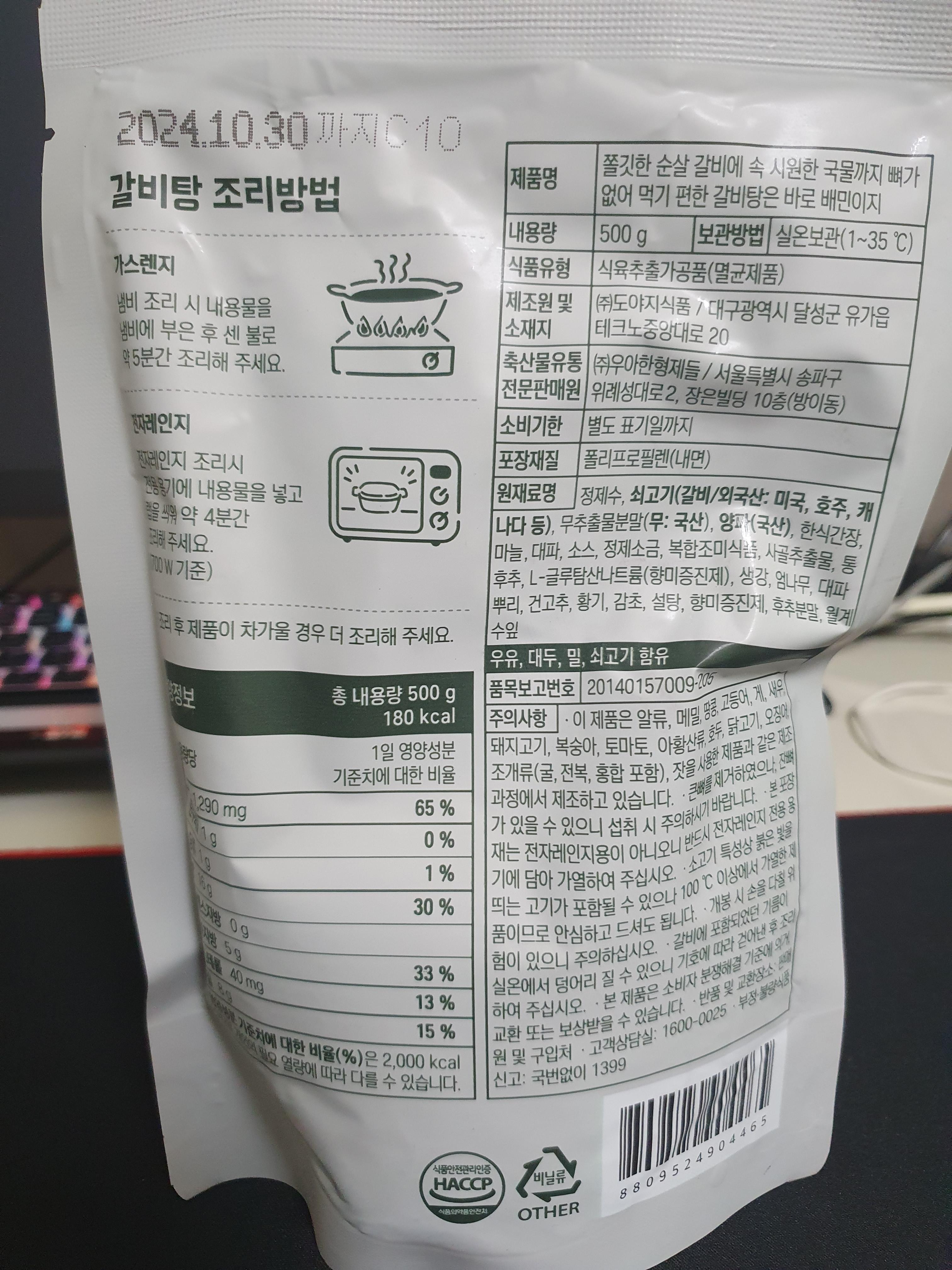 기대 이상의 맛이었어서 좀 귀찮고 급할 때 먹기 괜찮은 '쟁여두기 갈비탕' 정도에 딱 알맞는 것 같다. 그렇다고 갈비탕 먹고 싶을 때마다 이걸 사먹기에는... 건강에 좀 머시기할 것 같고 맛은 솔직히 인스턴트 아닌 웬만한 갈비탕보다 맛있는데 그래도 기타 보존제 같은 건 많이 먹으면 안되니까... 근데 정말 맛만 놓고 보면 이정도면 진짜 웬만한 갈비탕 다 이긴다.
